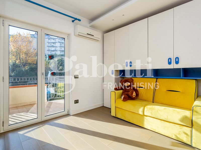 Salendo al primo piano, scoprirai la zona notte, pensata per garantire comfort e intimità. Troverai una splendida camera matrimoniale dotata di cabina armadio ed una vasca idromassaggio, una cameretta, un vero angolo di relax privato. Da qui, potrai accedere a tre balconi, che offrono una vista esclusiva e un'ottima esposizione. Un secondo bagno, moderno e spazioso, completa il piano.