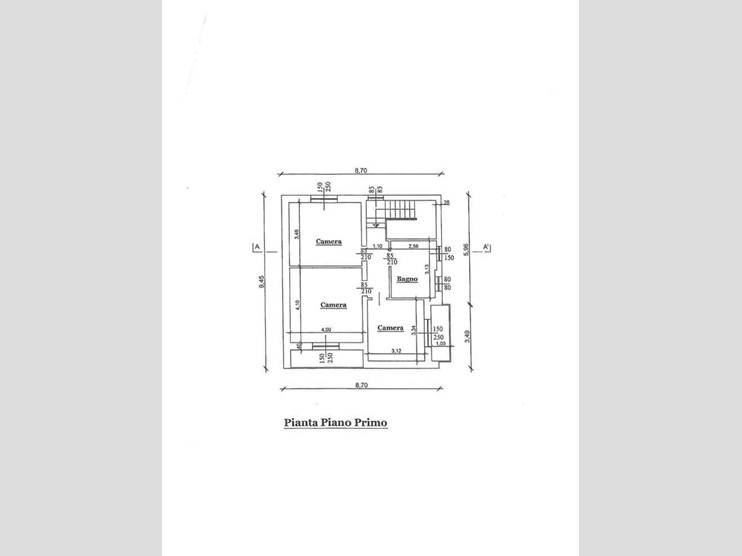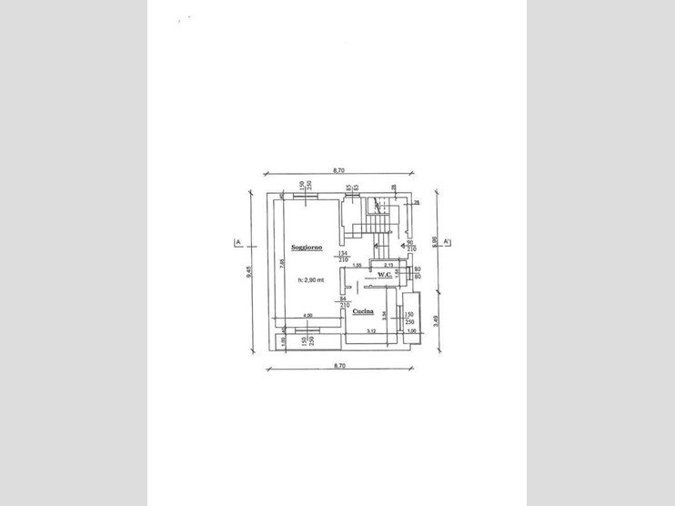170 MQ così distribuiti; al piano rialzato 78 mq con soggiorno ampio e balconata, cucina separata, bagno di servizio. Al piano primo 78 mq con tre camere, due delle quali di taglio matrimoniale e servite da balcone, bagno padronale con vasca idromassaggio. Cantinola di 14 mq adibita a locale tecnico al piano seminterrato