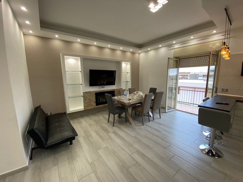 Il balcone lungo circa 9 metri che rende la casa luminosa e arieggiata. L'immobile è dotato di infissi in PVC con vetrocamera, pavimentazione in elegante gres porcellanato, porte interne di ottima scelta. L' appartamento è ubicato all'interno di un condominio al 5 piano non ultimo. Parcheggio nel piazzale sottostante. La zona è centralissima ed è servita da negozi di qualsiasi genere (abbigliamento, calzature, articoli sportivi, pelletterie, casalinghi, profumerie, ecc. ), attività commerciali (quali pasticcerie, panifici, farmacie, macellerie, cartolibrerie, parrucchieri, bar/ristoro) banca, poste italiane e uffici di vario tipo. L’appartamento viene venduto totalmente ammobiliato come da foto allegate .