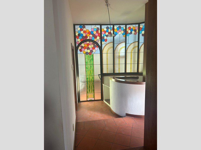 Attraverso un'imponente scala, si raggiunge il piano primo con due camere matrimoniali con servizio esclusivo, una camera matrimoniale ed una singola, ambedue con terrazza, bagno.