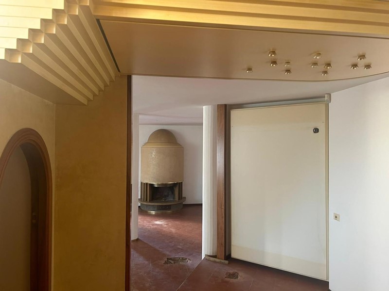 Attraverso un viale pedonale, si guadagna l'ingresso della villa, che ci catapulta letteralmente nella particolare zona living e pranzo arricchita da un camino e da una parete completamente vetrata. La cucina è abitabile ed ha l'uscita verso la grande terrazza panoramica. Il piano terra e' completato da uno studio, un bagno ed un guardaroba ospiti.