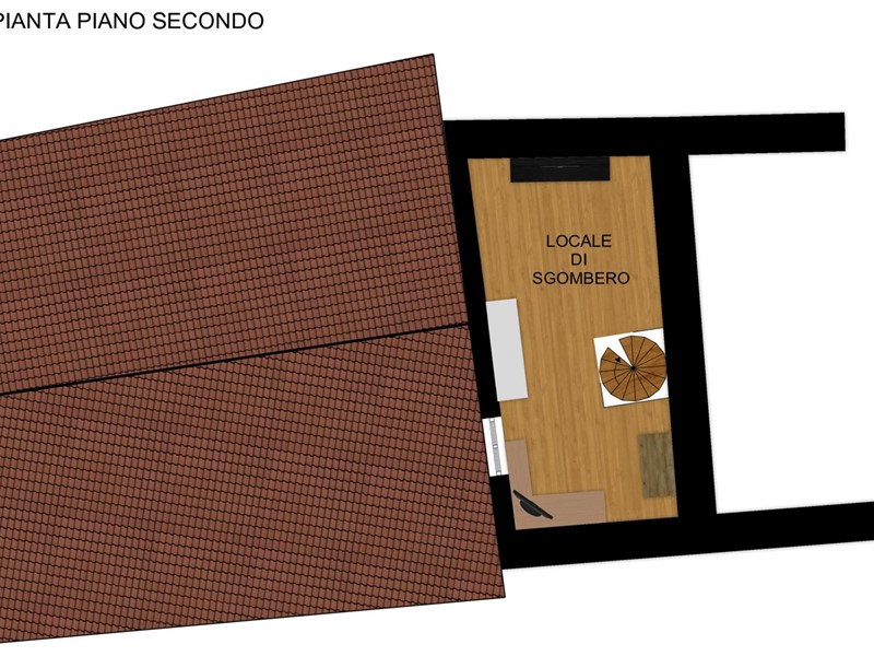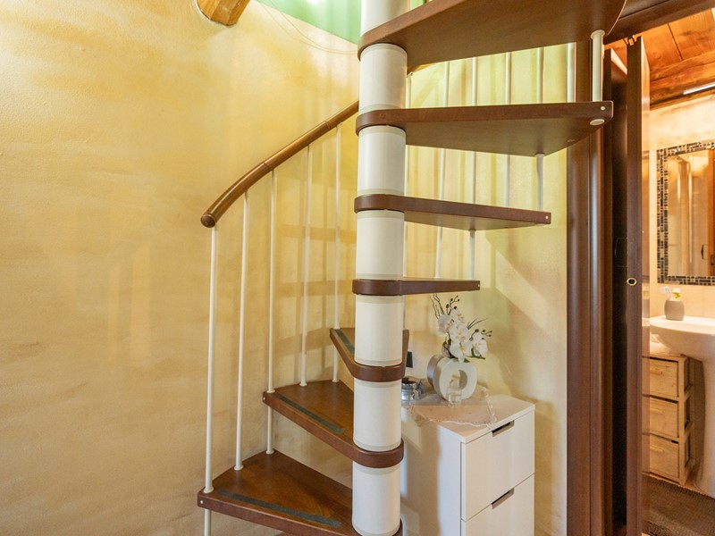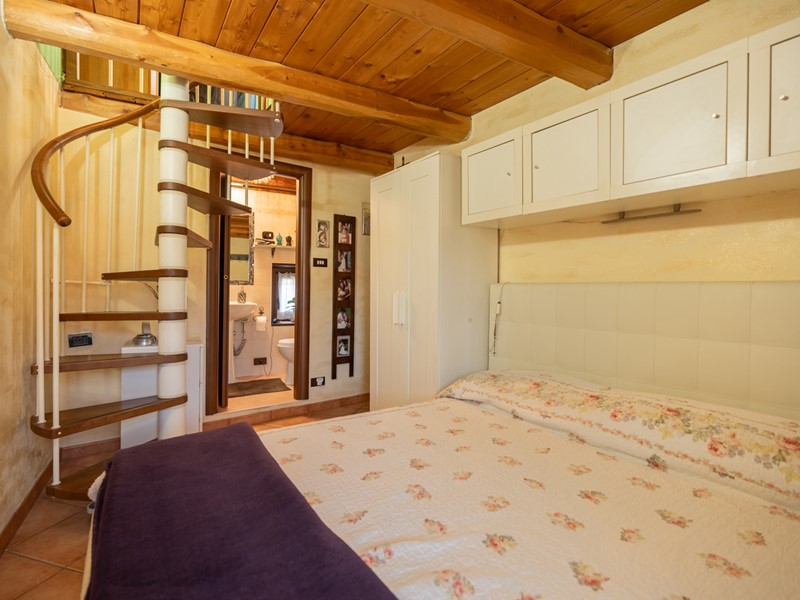 La casa, di circa 100 mq commerciali, si presenta come un abbraccio caldo e accogliente. L'ingresso conduce a un soggiorno con cucina a vista, dove il legno del tetto a vista e il calore dell'angolo camino creano un'atmosfera perfetta per momenti di autentico relax. La camera matrimoniale, il bagno con doccia e un pratico locale di sgombero, accessibile tramite una scala a chiocciola - ideale come cabina armadio o spazio aggiuntivo - completano il piano.