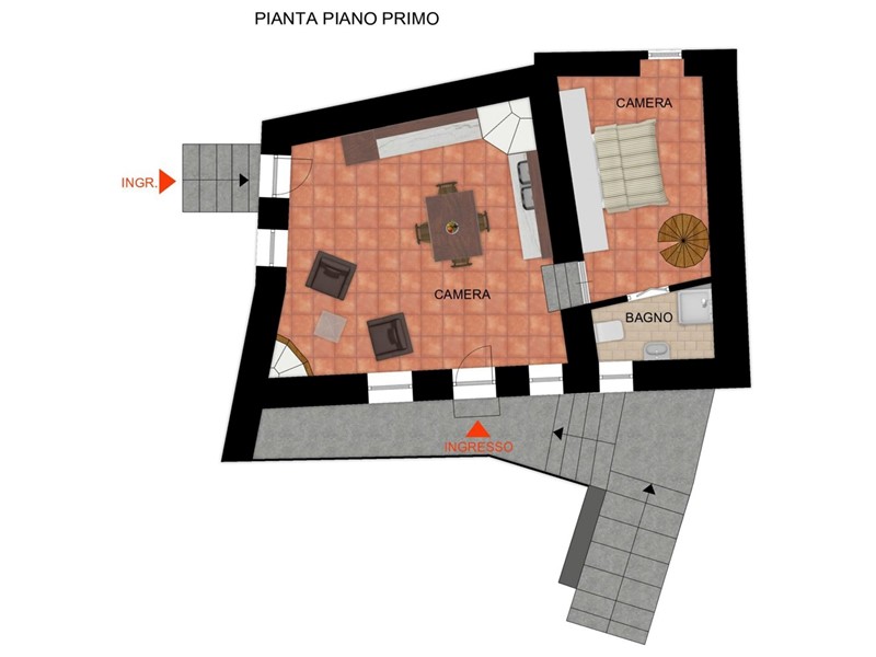 Nel cuore di una borgata sopra Perosa Argentina (Borgata Ciampiano), a 870 metri sul livello del mare e abitata tutto l'anno, si trova una soluzione unica: un terratetto completamente ristrutturato, incastonato in un contesto montano raggiungibile comodamente grazie a una strada asfaltata.