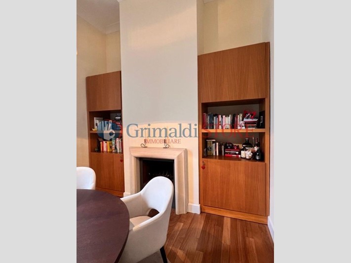 L’immobile è ad angolo ed abbraccia due importanti vie del centro della città; grazie alla sagoma rettangolare, la composizione interna risulta razionale: comodo ingresso, sala da pranzo in cui è presente un suggestivo camino “Palazzetti” incastonato in una parete in noce Tanganika fatta su misura, spazioso e luminoso soggiorno, disimpegno, cucina abitabile con mobilio anch’esso fatto su misura in noce Tanganika, vano lavanderia e ripostiglio in adiacenza, doppi servizi che prendono aria e luce grazie alla presenza di una chiostrina, due camere da letto matrimoniali di cui una con il bagno en suite e l’altra con balcone. La pregevolezza del bene si riflette anche sulle rifiniture e tra queste sono senz’altro meritevoli di nota il pavimento in parquet Iroko e marmo di Carrara nei bagni, i lampadari “Kartell”, le maniglie “Olivari”, la rubinetteria e docce “Grohe”, le tende su misura “La Tessitura Calabrese”; per quanto riguardo gli impianti, quello elettrico è stato revisionato di recente con divisione degli ambienti ed alimentazione del condizionatore separata, l’impianto di condizionamento è canalizzato con controllo a display delle bocchette di aerazione in ogni stanza e da remoto, la caldaia è a condensazione “Bosh” con comando a display e da remoto, controsoffitto in tutte le stanze che favorisce l'efficientamento energetico con cornici in gesso.