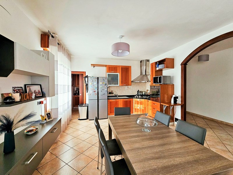 Completano la proprietà una cantina al piano interrato e due garage al piano terra di cui uno con bagno. All'esterno circa posti auto assegnati.