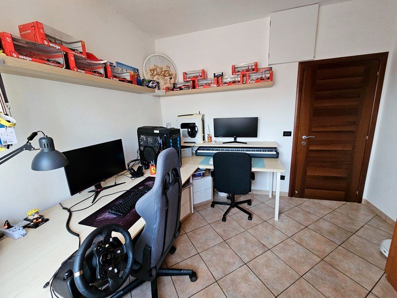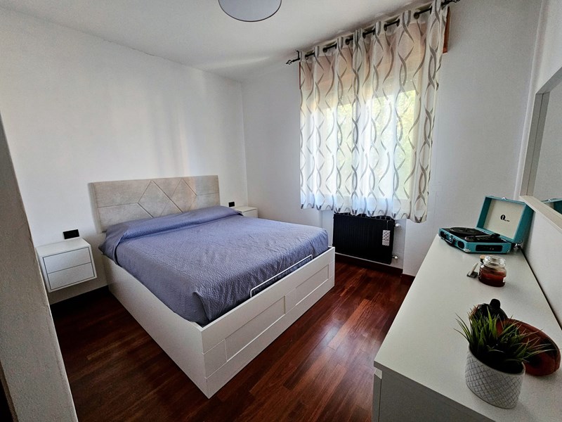 Nella zona notte, divisa da una porta scorrevole troviamo 2 ampie camere da letto matrimoniali (16mq l’una) di cui una con cabina armadio, 1 camera da letto singola al momento adibita a studio e un bagno 1 bagno.