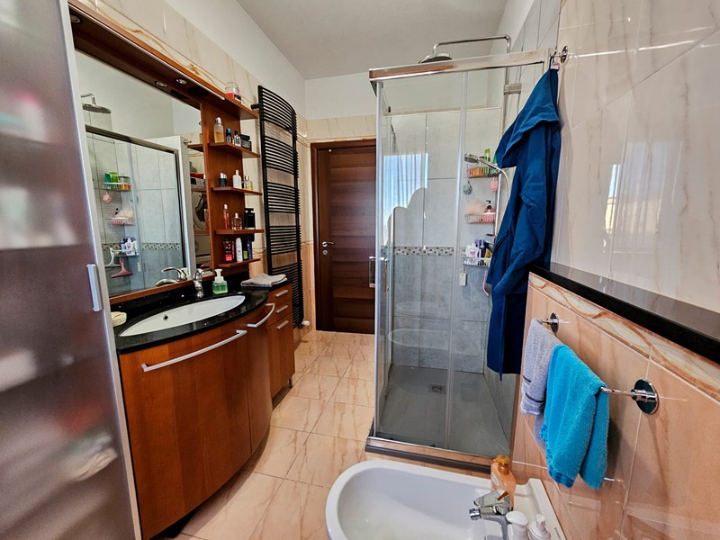 L'appartamento è composto da un ingresso di ampie metrature, con accesso su salotto e soggiorno pranzo, cucina open space, la zona giorno dispone di 3 portefinestre che danno accesso sul balcone e rendono la stanza molto luminosa.