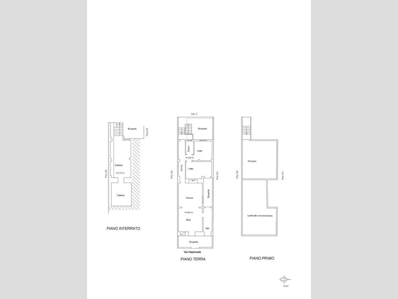 L’abitazione , ante 1967 per le stanze con le volte a stella, mentre per le stanze con le volte piane è stata eseguita una ricostruzione, si estende per una superficie complessiva coperta di circa 240 mq. Al piano terra, con accesso da Via Nazionale, la prima unità immobiliare è di circa 140 mq compresa la cantina, ed è composta da ingresso, due ampie stanze con volta a stella, disimpegno, due camere da letto e bagno con spazio esterno retrostante di circa di circa 50 mq. La cantina, con due grandi stanze, di cui una con volte a botte ed ha una superficie coperta di circa 50 mq. ed il garage con accesso da Via Cappelluzza ha una superficie di circa 50 mq, dove è stato creato un bagno di servizio. La seconda unità immobiliare, di circa 55 mq, trova accesso dal garage e si trova al primo piano, ed è composta da soggiorno-angolo cottura, bagno e camera da letto. Ampio terrazzo a livello di circa 50 mq.