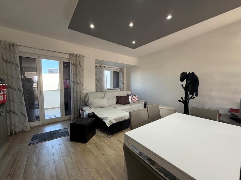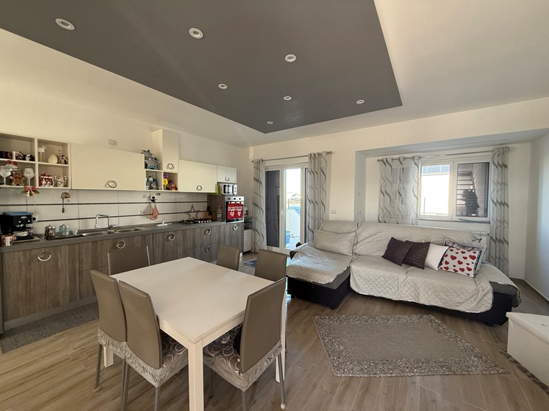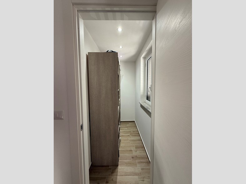 L'ingresso si apre direttamente sul soggiorno/cucina, uno spazio ampio e accogliente che offre una vista aperta sui due balconi verandati. Completano il piano un pratico bagno di servizio e un cortile antistante con cancello automatico e zona riservata a parcheggio. La zona esterna retrostante, spaziosa e ben esposta, offre la possibilità di vivere all'aria aperta in totale privacy.