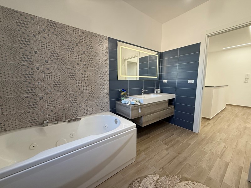 La zona notte si compone di una grande camera matrimoniale con cabina armadio, una seconda camera da letto comoda e un ampio bagno dotato di vasca idromassaggio, ideale per momenti di puro relax. Entrambe le camere sono servite da due balconi, che garantiscono un'ottima luminosità e una gradevole ventilazione naturale.