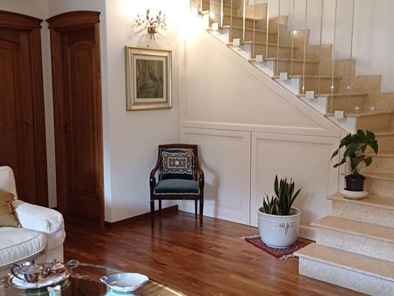 Il giardino di 30 mq circonda la casa su tre lati, offrendo spazi verdi e privacy. Inoltre, la villa dispone di seminterrato, quattro posti auto, riscaldamento autonomo a metano, climatizzazione, autoclave privato e infissi con doppio vetro.