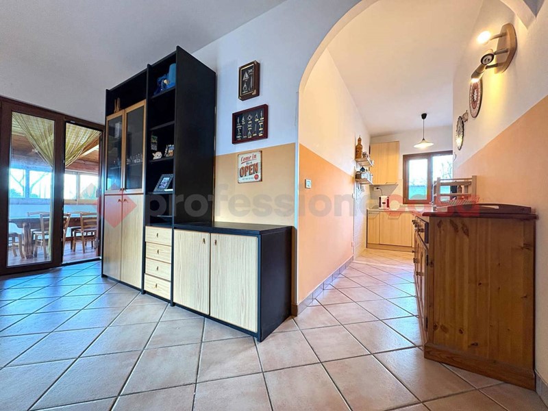 L'ingresso accogliente conduce a un luminoso salone, caratterizzato da grandi finestre che permettono alla luce naturale di inondare gli spazi, creando un'atmosfera calda e invitante. Adiacente al salone si trova la cucina abitabile dotata di tutti i comfort.