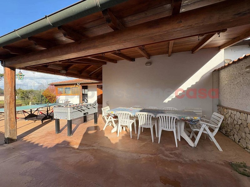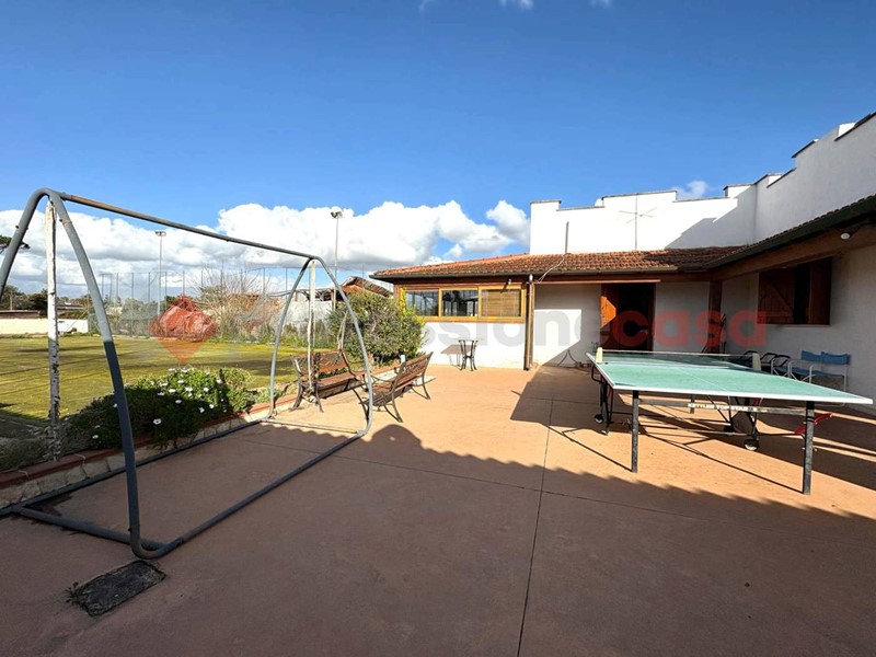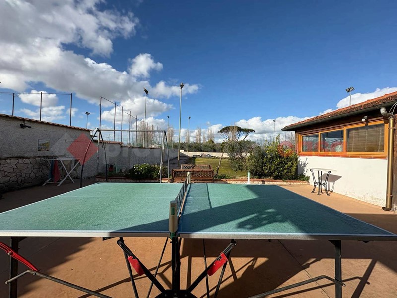 Questa particolare proprietà è caratterizzata da ampi spazi aperti per il relax e il divertimento, tra cui una zona attrezzata con tavolo di ping-pong, biliardino e altalena per i più piccoli oltre ad una zona attrezzata con barbecue, forno a legna e una tettoia che consente momenti di convivialità al riparo.