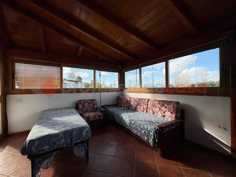 da questa ampia zona giorno troviamo l'accesso all'esterno in una veranda di 30 mq. dotata di ampie vetrate con vista panoramica, spazio ideale per pranzi e/o cene.