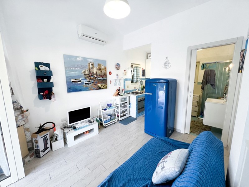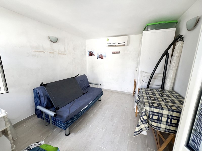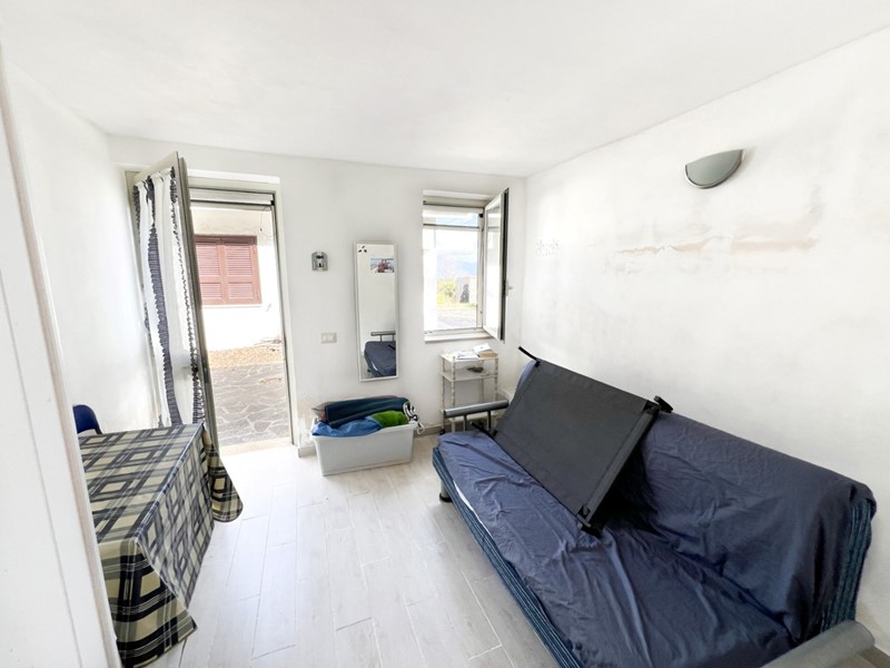 L'interno, completamente ristrutturato, offre una zona giorno con camino, un angolo cottura in muratura e due camere da letto luminose, mentre la dependance si compone di un unico ambiente finestrato e climatizzato con annesso bagno privato, ideale per ospiti. Il giardino privato di complessivi 1.000 mq., arricchito da un comodo portico e da una vista mozzafiato sul mare, regala momenti di relax e convivialità.