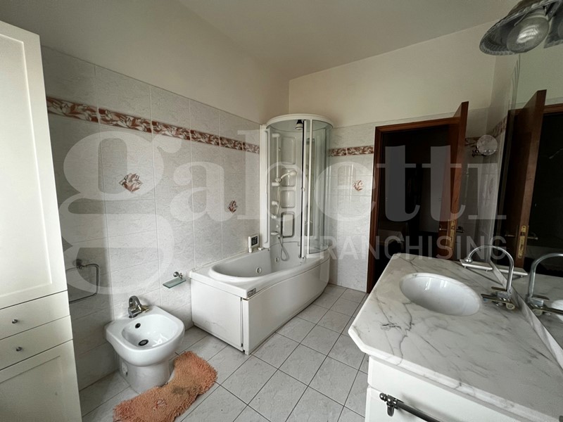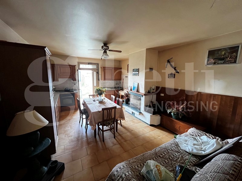 In bifamiliare appartamento al piano secondo composto da ingresso, soggiorno con terrazzo, cucina abitabile con terrazzo, disimpegno, 3 camere, bagno. A piano terra cucina rustica con camino, bagno e garage. Soffitta. Giardino privato.