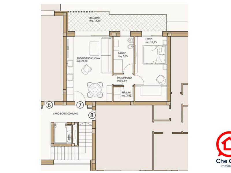 La soluzione è un comodo appartamento bilocale al piano primo, caratterizzato da un ampio terrazzo abitabile accessibile da ogni ambiente. Internamente living open space di quasi 23 mq calpestabili, ampio bagno finestrati, ripostiglio lavanderia. Zona notte composta da una camera matrimoniale di quasi 16 mq calpestabili con la possibilità di realizzare una cabina armadio.