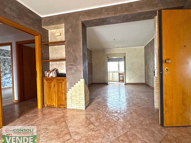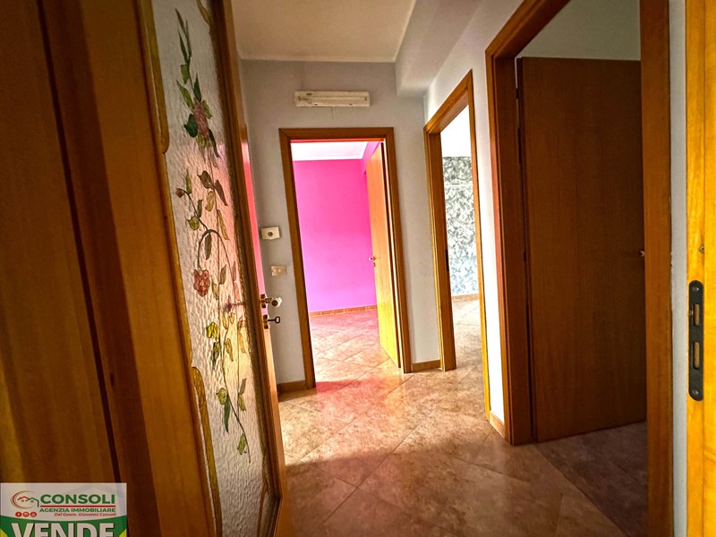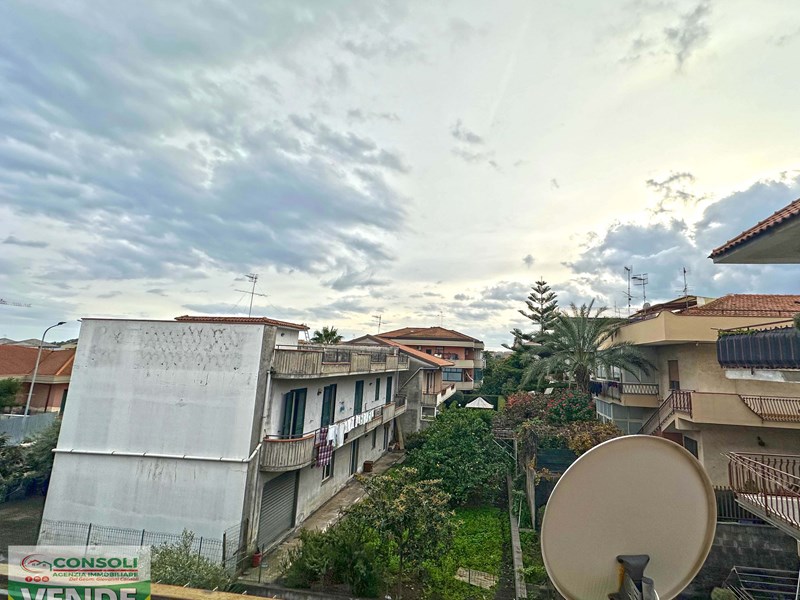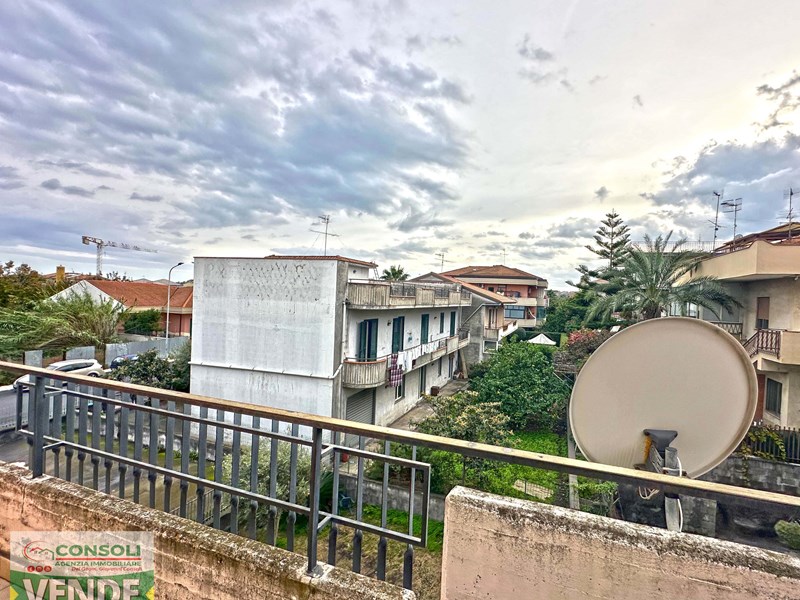 Consoli Immobiliare propone in vendita a Mascali, zona prettamente residenziale di nuova espansione, appartamento posto al secondo piano, di una palazzina di sole tre unità immobiliari. Si accede dalla strada attraverso un vialetto che arriva fino al portone condominiale. L'immobile è ubicato al secondo e ultimo piano, cosi composto: Ingresso su salone-cucina openspace cpon affaccio interno ed esterno, disimpegno chiuso da una porta che serve le due camere da letto, bagno e lavanderia con doppio servizio. Nel balcone della cucina insiste una veranda adibita a cucinotto, e vano ripostiglio. Al piano superiore, locale C/2, unico ambiente, mentre al piano S1 box di 30 mq fronte scivola, con facilità di manovra, compodo per due auto e posto macchina esterno in cortile condominiale, recintato. L'immobile è in buone condizioni, ben disposto, abitabile da subito. La zona è vicino al centro e ben servita.