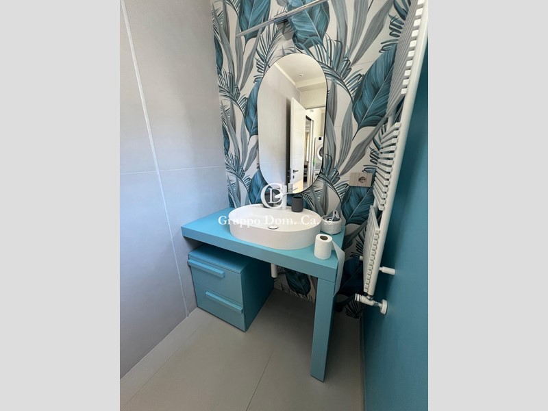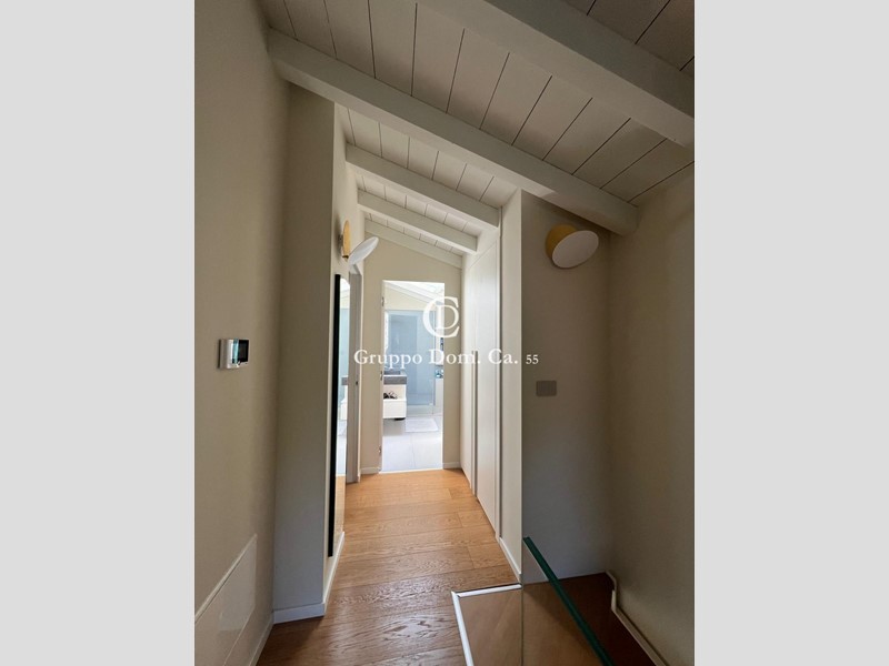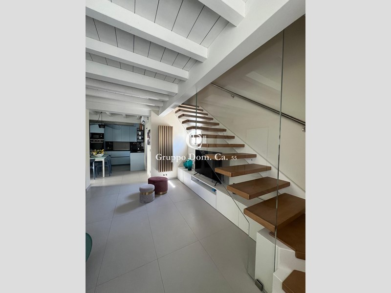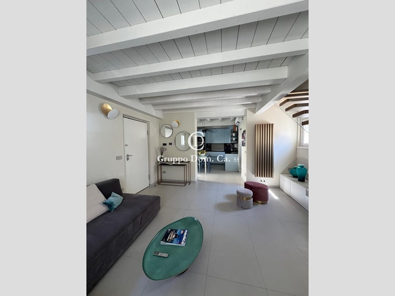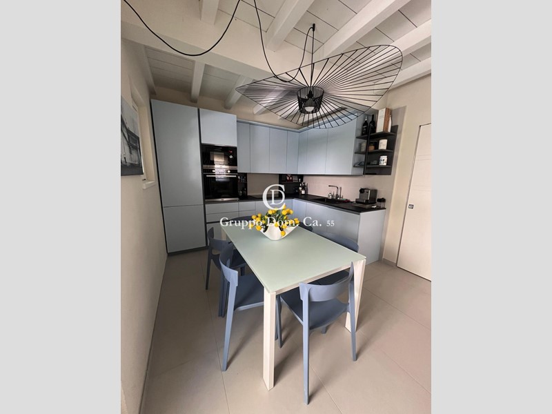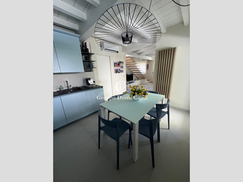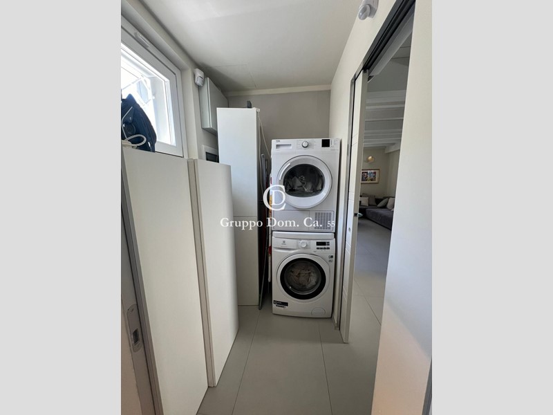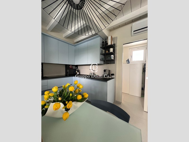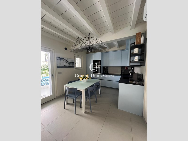 All'interno presenta un ampio soggiorno arredato con gusto e caratterizzato da un design moderno e funzionale. La cucina abitabile, completamente attrezzata, è separata dal soggiorno e collegata a una veranda pranzabile attraverso una porta finestra. Al piano terra si trovano anche un bagno di servizio e un comodo ripostiglio.