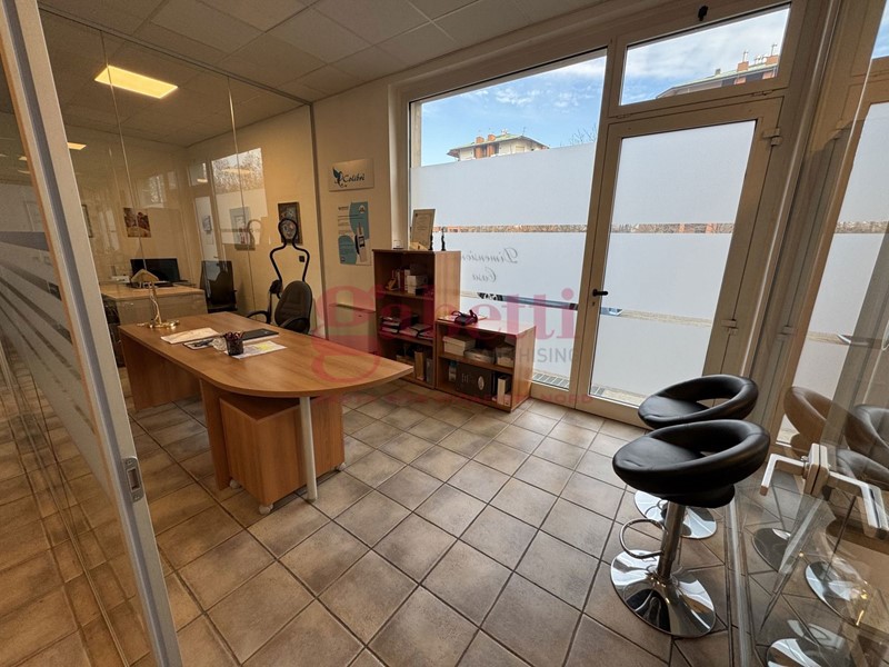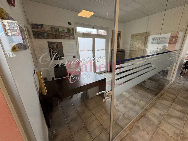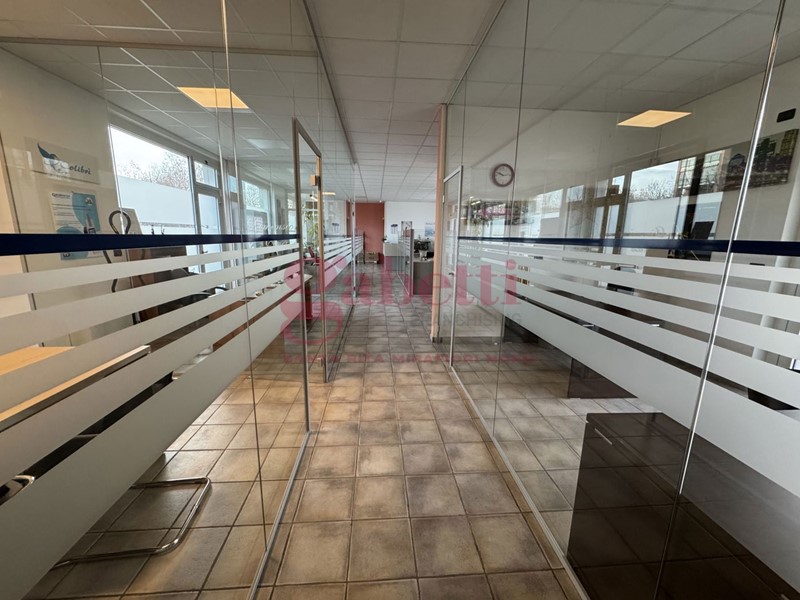 COMPOSIZIONE INTERNA: ingresso su grande locale open space comprendente svariati ambienti suddivisi da luminose vetrate, sala riunioni, disimpegno, servizio interno finestrato, locale ripostiglio, cantina al piano interrato;