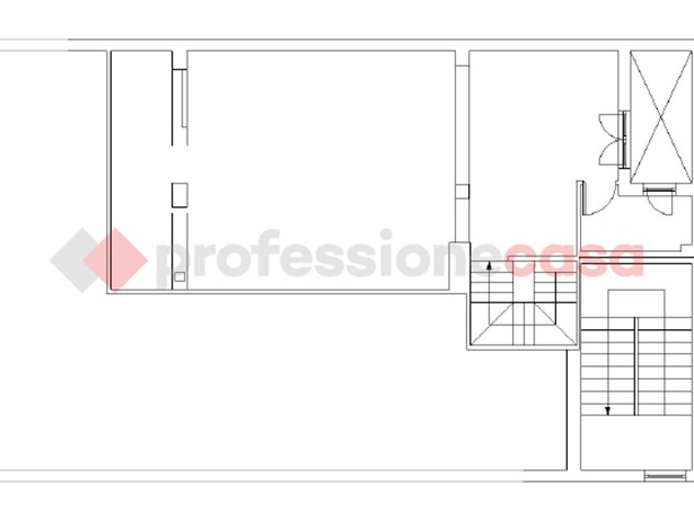 L'immobile è disposto su due livelli, piano terra e ammezzato, e internamente suddivisa in un vano principale in passato destinato al ricevimento del pubblico e alla zona casse, corrispondente alla maggior parte della superficie dell'immobile. Sono poi presenti, un altro vano ufficio, locale tecnico, wc e una piccola chiostrina, poi una scala metallica autoportante conduce al piano ammezzato, destinato ad archivio/deposito. L'immobile necessita di interventi di ristrutturazione.