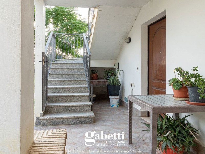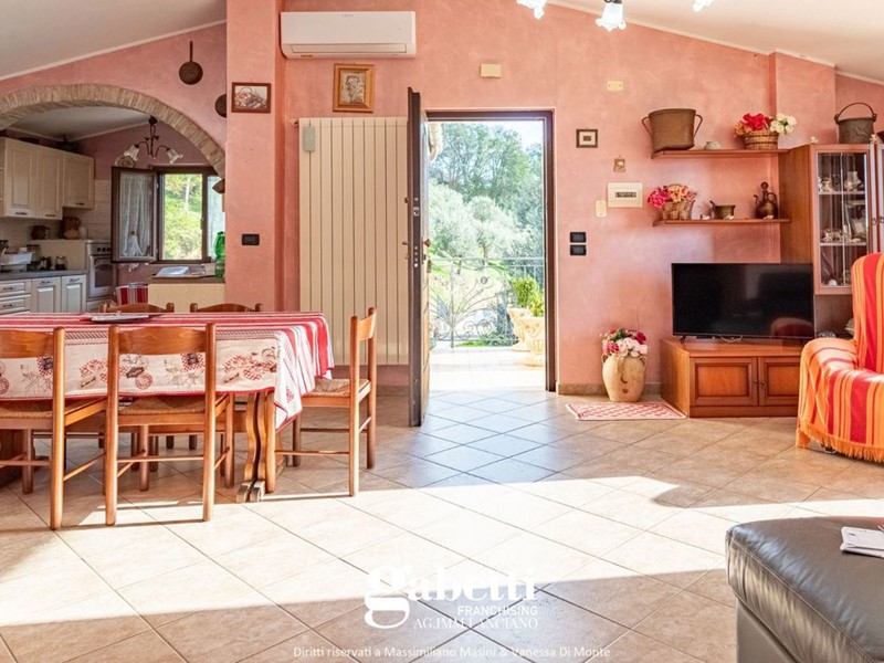 Una suggestiva stradina privata conduce all'abitazione, costruita nel 2013 e disposta su due livelli. Al piano terra troviamo diversi locali, attualmente adibiti a cantine, ma facilmente trasformabili in una meravigliosa taverna, spazi ad uso commerciale, residenziale o altro. Al primo piano, raggiungibile tramite una bellissima scala esterna, si trova l'abitazione principale, composta da un'ampia zona living, cucina a vista, comodo ripostiglio/lavanderia, due camere matrimoniali, uno studio e un bagno. Il tutto è circondato da meravigliosi balconi da cui si può godere di un'incredibile vista panoramica.
