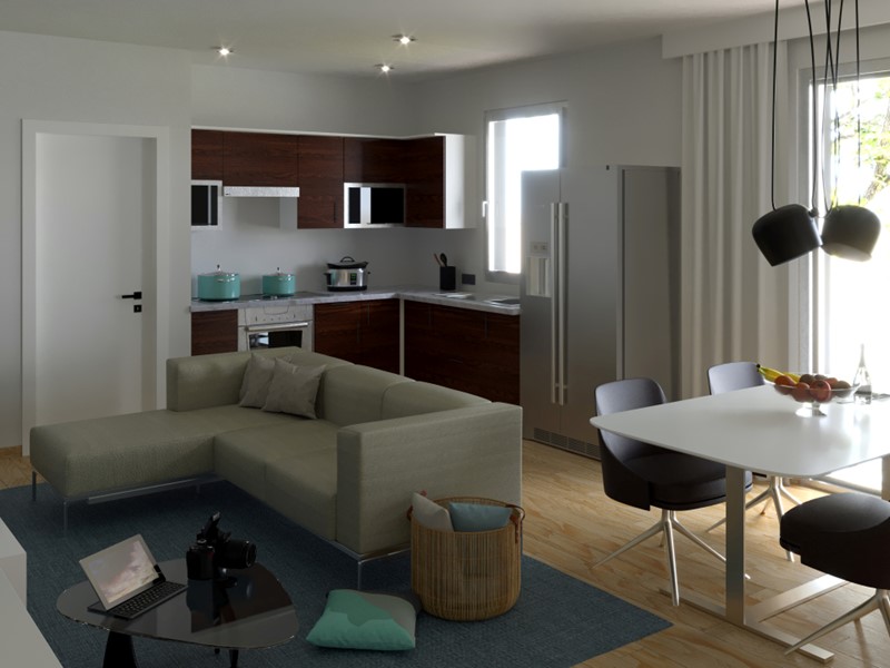 Al piano terra proponiamo appartamento trilocale composto da ingresso su spaziosa zona giorno/angolo cottura con accesso diretto sull'ampio giardino privato, disimpegno, 2 camere e 2 bagni. Completano la proprietà garage e posto auto. Ampia possibilità di personalizzazione e finiture di pregio.