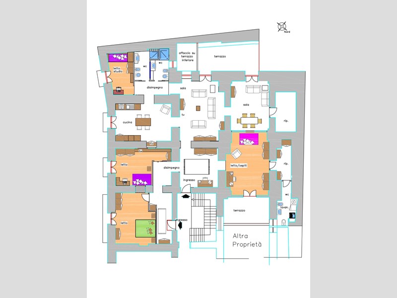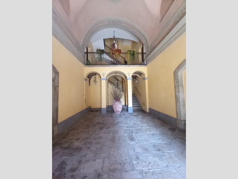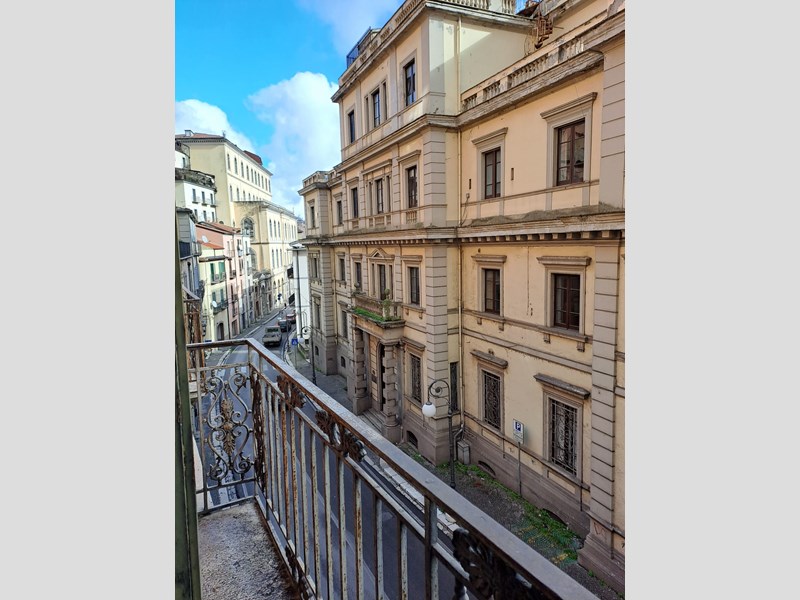 Appartamento situato in uno dei più antichi palazzi del centro storico ,anno di costruzione 1850 inciso sulla chiave di volta del portale originale in pietra.L'appartamento ha due ingressi sul pianerottolo con una grande stanza con loggiato che comunica con il resto dell'appartamento tramite porta interna .Ingressi con porte blindate.Il palazzo è situato a mezza costa fra le due strade parallele c.so Umberto e via del Popolo, ha due ingressi in posizione centrale rispetto agli impianti delle scale mobili e ascensori di piazza 18 Agosto.L'ingresso di via del Popolo consente di raggiungere immediatamente la centralissima via Pretoria.