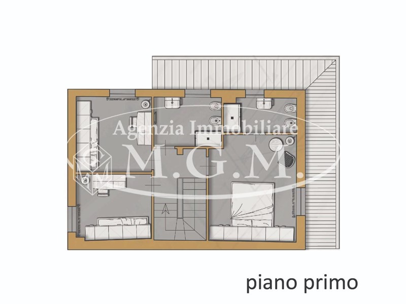 Al piano superiore troviamo il reparto notte, dove la camera principale con bagno privato offre uno spazio intimo e confortevole, le due camerette spaziose sono perfette per i bambini ed il bagno principale è dotato di una grande doccia.