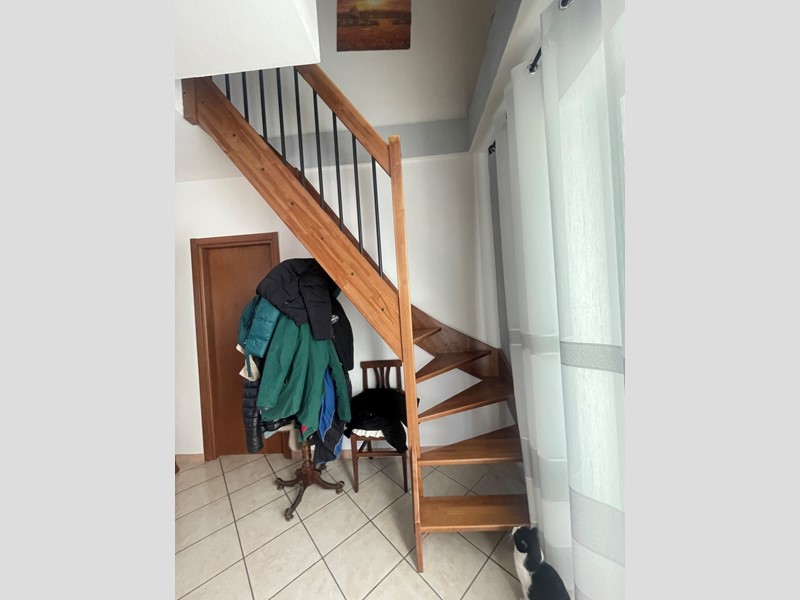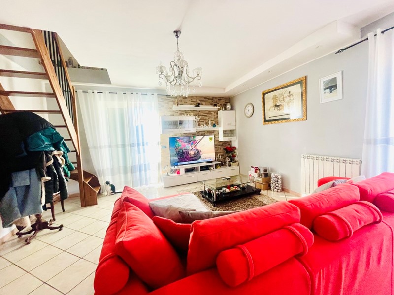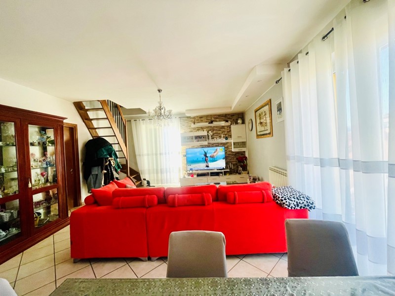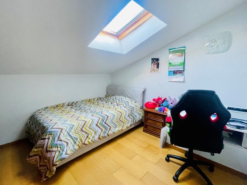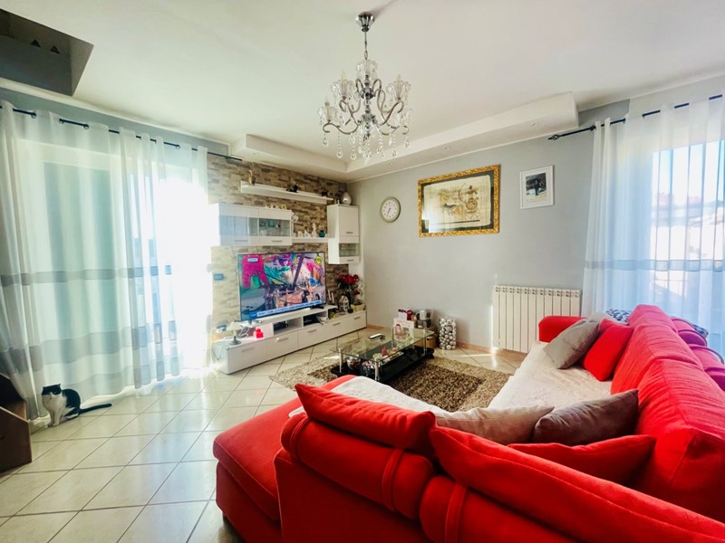 La soluzione si compone quanto segue: ingresso in salone con cucina a vista tre balconi, servizio finestrato, scala in legno che conduce al locale sottotetto dove sono state ricavate 3 camere e ampio servizio con box doccia.