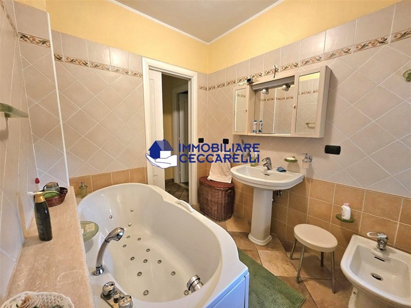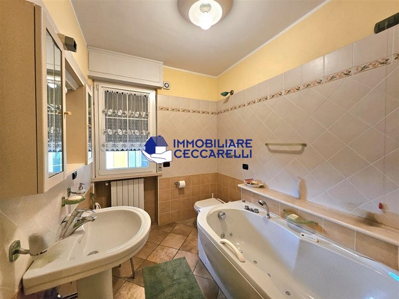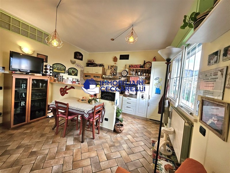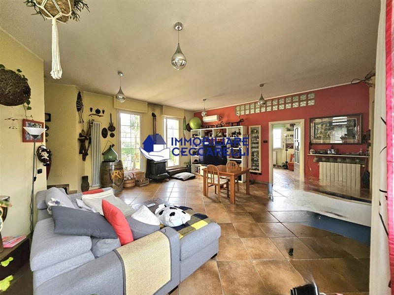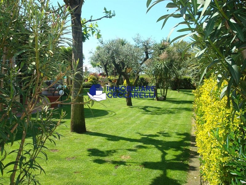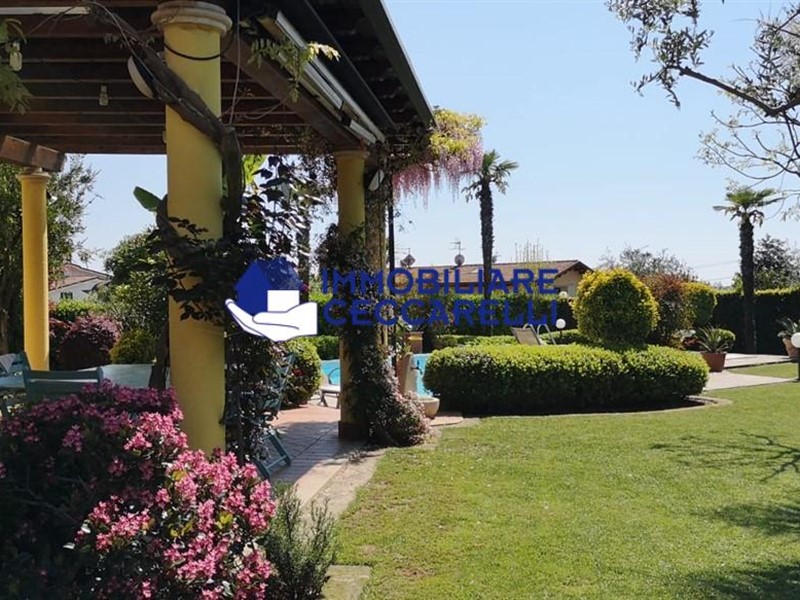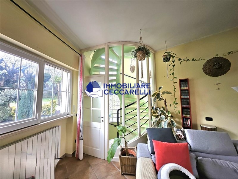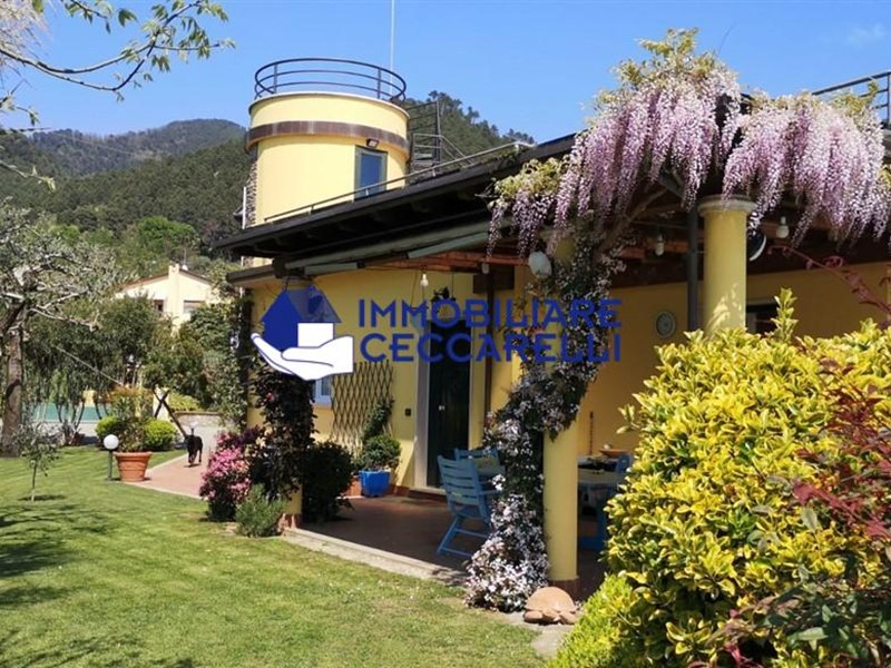 Circondata da un terreno di circa 2000 mq, l’abitazione è protetta da una recinzione adeguata e accessibile tramite un cancello motorizzato. L'ampio parcheggio pavimentato offre spazio per diverse autovetture. La villa si sviluppa su tre livelli indipendenti per una superficie di circa 300 mq. Composizione: • Piano Terra: un ampio ingresso conduce al luminoso salone-soggiorno. La cucina abitabile è collegata a una suggestiva pompeiana, ideale per momenti di relax, che si affaccia sulla piscina. Il piano terra ospita inoltre due eleganti bagni e cinque spaziose camere da letto. • Piano Seminterrato: un'accogliente taverna con camino offre l'ambiente perfetto per le serate invernali. Completano il piano un bagno, una lavanderia e comode cantine. • Piano Primo: una grande terrazza panoramica a tetto, con soffitta, consente di godere di una vista mozzafiato che spazia dalle verdi montagne al mare. Un'imponente e unica scala a spirale, circondata da una vetrata trasparente, collega i vari livelli, aggiungendo un tocco di design all'intera abitazione. Gli interni sono caratterizzati da un design moderno con una distribuzione spaziosa e dinamica che rende ogni ambiente unico. Esterni e Giardino: la piscina, situata nella parte sud della villa, domina la porzione più ampia del giardino. Il terreno è caratterizzato da un gioco di dislivelli che rende gli spazi esterni ancora più suggestivi e vivibili. Impiantistica e Finiture: la villa è dotata di impianti all’avanguardia in linea con le normative sul risparmio energetico. Il sistema termico ed elettrico trifase è supportato da un impianto fotovoltaico da 12 kWh con accumulo in batteria a litio da 21 kW e una caldaia ibrida a pompa di calore e metano.