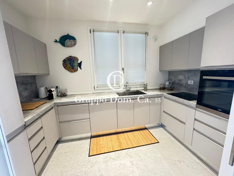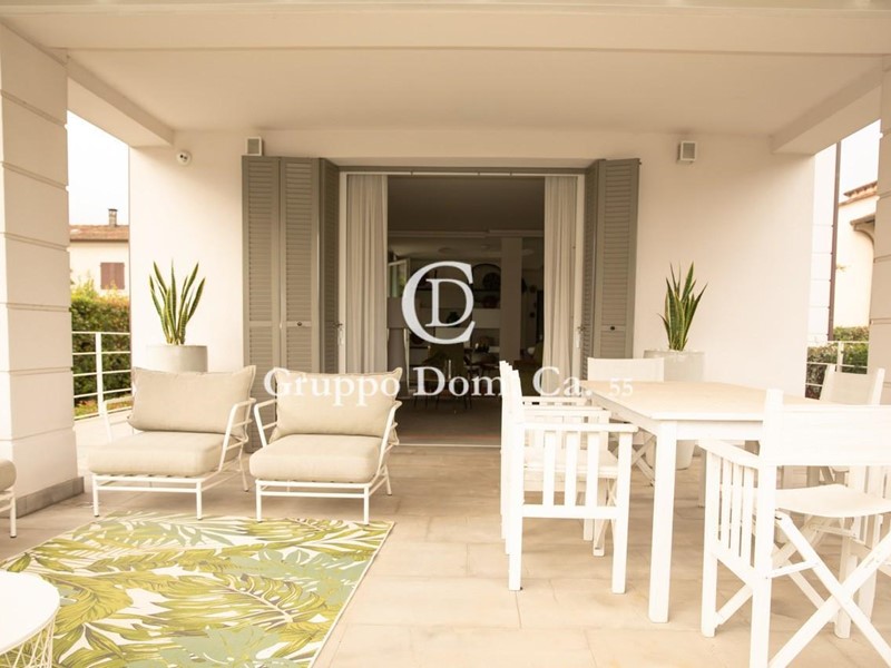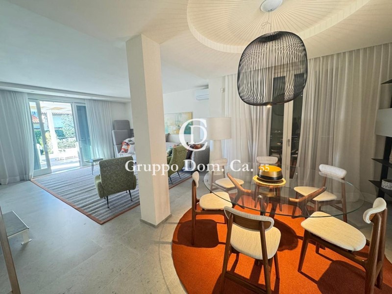 FORTE DEI MARMI - ZONA CENTRO - Porzione di bifamiliare situata in un contesto residenziale tranquillo, a pochi passi dal centro e dal mare, con facile accesso a tutti i principali servizi. L'immobile, distribuito su tre livelli, si presenta in ottime condizioni ed è arredato con cura e attenzione ai dettagli. Al piano terra l'ingresso conduce a una cucina moderna dotata di vetrata scorrevole, che può essere chiusa all'occorrenza, a una zona pranzo arredata con un elegante tavolo rotondo per sei persone, un bagno di servizio, un pratico ripostiglio e un luminoso soggiorno con accesso diretto, tramite porta finestra, a una splendida veranda che affaccia sul giardino, attrezzata con tavolo e divani, ideale per pranzi e cene all'aperto e per i momenti di relax. Al piano primo troviamo la zona notte che comprende due camere matrimoniali, entrambe dotate di bagno en-suite, e una terza camera matrimoniale con bagno situato nel corridoio. Il livello seminterrato ospita un ampio ambiente open-space adibito a sala con angolo cottura, una spaziosa camera matrimoniale e un bagno con doccia.