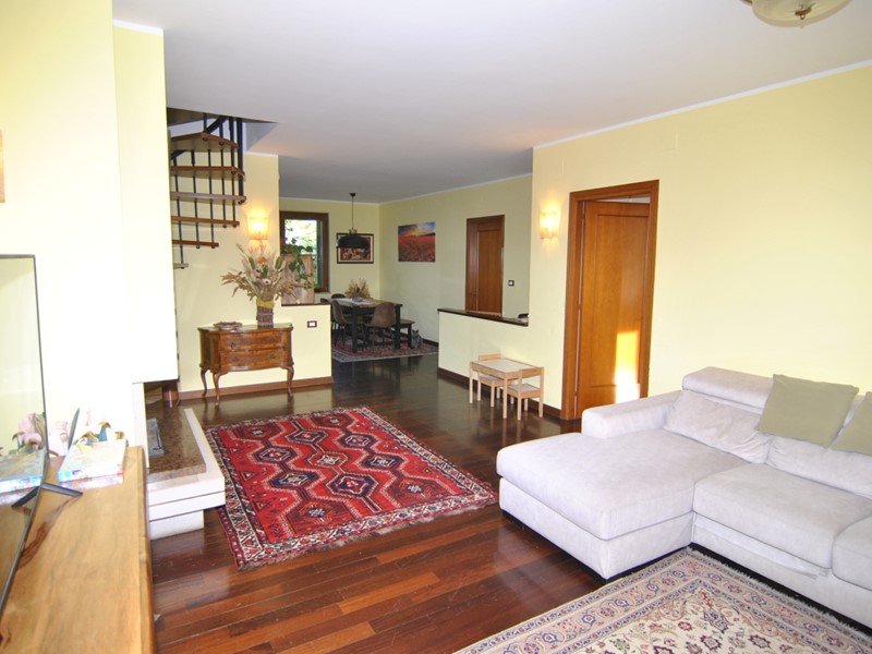L'immobile è così composto: al piano terra grande salone con camino e pavimenti in parquet, cucina abitabile con accesso a patio esterno e giardino, due camere, e due servizi (nuovi) con piatto doccia e finestra. Nel seminterrato si trova altra sala, corredata di forno e camino, ideale per cene e serate in compagnia e famiglia, oltre ad altre due stanze (ideali per camere per eventuali ospiti) e un vano ad uso lavanderia / wc.
