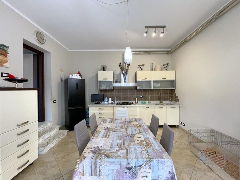 L'ingresso avviene direttamente a piano terra rialzato e più precisamente sull'ampio e luminoso soggiorno. Nelle immediate vicinanze trova posto una cucina abitabile, spaziosa e ben organizzata. Completa il piano terra un pratico bagno di servizio, comodo e ben rifinito.