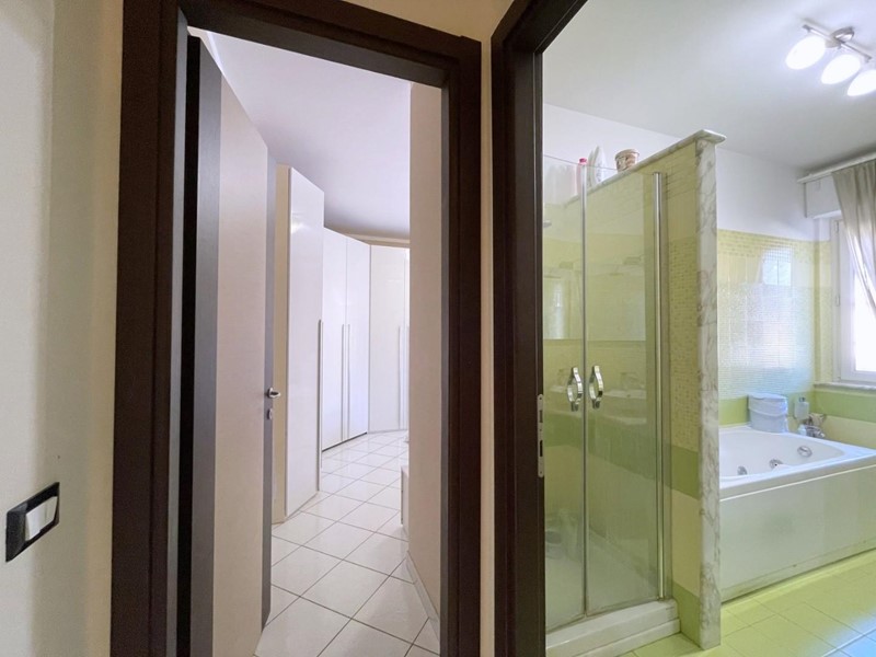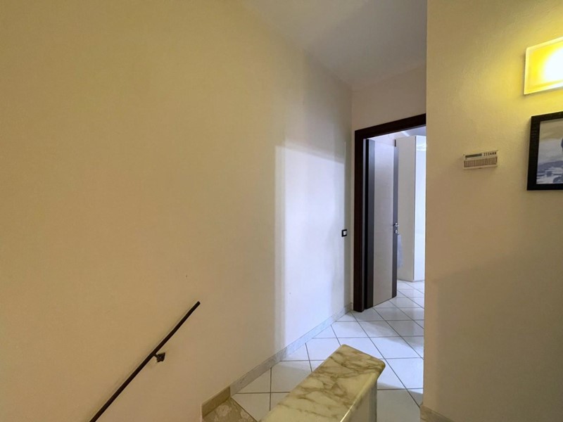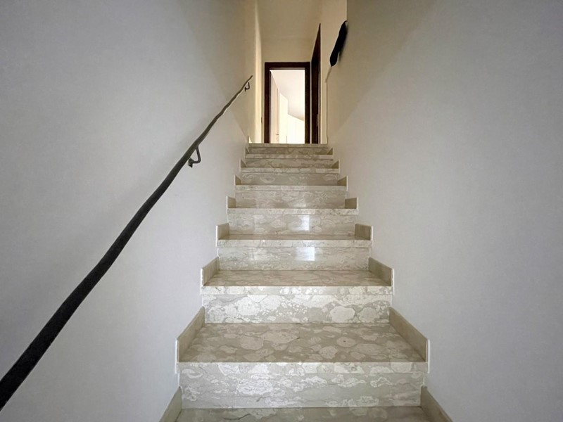 Attraverso le scale poste nel soggiorno si raggiunge il piano primo. La zona notte si sviluppa su questo piano ed è composta da tre camere accoglienti. La camera matrimoniale offre ampi spazi e un'atmosfera elegante, mentre le altre due camere risultano singole, una delle quali versatile da utilizzare anche come stanza armadi. Il bagno principale è dotato sia di una doccia moderna che di una vasca, per rispondere a ogni esigenza di relax e praticità.