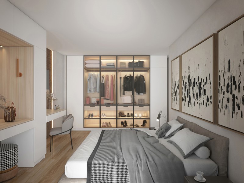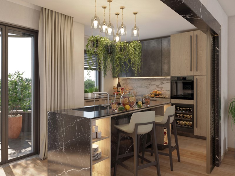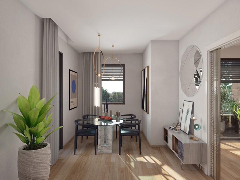 Gli appartamenti sono composti da un ampio living con cucina a vista servito giardino, camera matrimoniale e bagno.
