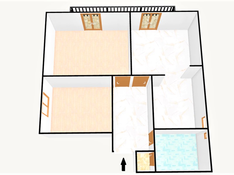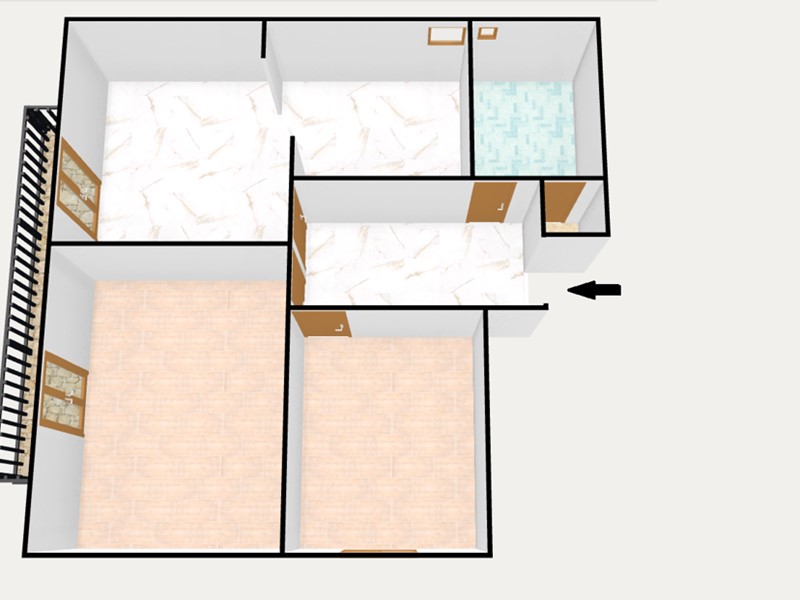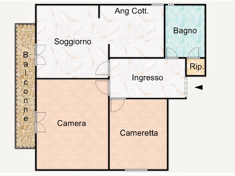 L'immobile, posto al 2° piano sul rialzato senza ascensore di un piccolo condominio con facciate in tinta in buone condizioni di manutenzione e con cortile recintato, è composto da: ingres-so/disimpegno, soggiorno con angolo cottura, camera da letto matrimoniale, cameretta, bagno, ri-postiglio e balcone.