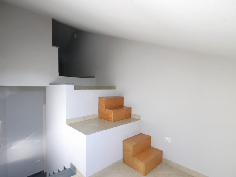 (Rif. 3270) MONTE S. QUIRICO In prima periferia di Lucca distante circa 1 km dal centro storico, in posizione tranquilla immersa nel verde, villetta a schiera centrale disposta su piani sfalsati di recente costruzione di complessivi 90 mq composta da: ingresso-soggiorno con angolo cottura, taverna adibita a cucina, ripostiglio, bagno finestrato al piano terra. Soggiorno al piano rialzato con possibilità di ricavare la seconda camera. Camera matrimoniale con terrazzo al primo piano. Due vani mansardati (di cui uno adibito a secondo bagno) al secondo piano. Corredata da giardino esclusivo di 25 mq completamente recintato e due posti auto su area a parcheggio. Condizioni di manutenzione pari al nuovo: portoncino blindato, infissi in legno con doppi vetri, persiane in alluminio e aria condizionata in tutti gli ambienti. Libera da subito. L'indirizzo pubblicato non corrisponde all'esatta ubicazione dell'immobile. C.E.:D EPgl: 70,7 kwh/m2anno.