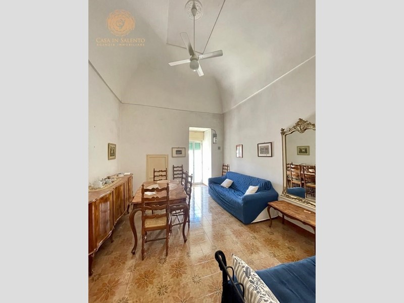 VENDESI a Diso, immobile indipendente al primo piano situato nella piazza del paese. Diso è collocata nel basso Salento, tra i centri di Castro, Andrano e Marittima, dista solo 48 km da Lecce e pochi km dalla sua marina. Inoltre, è situata nel versante orientale della penisola salentina includendo un breve tratto del litorale adriatico. L’immobile di antica costruzione è composto da 3,5 vani e accessori per una superficie coperta di circa 88 mq, al quale si aggiunge un garage di circa 20 mq. accessibile anche dall’interno. Lastrico solare di proprietà esclusiva. Volte a botte, impianto idrico e fognario allacciato alla rete nazionale. Ottimo investimento. C.E.: "G".