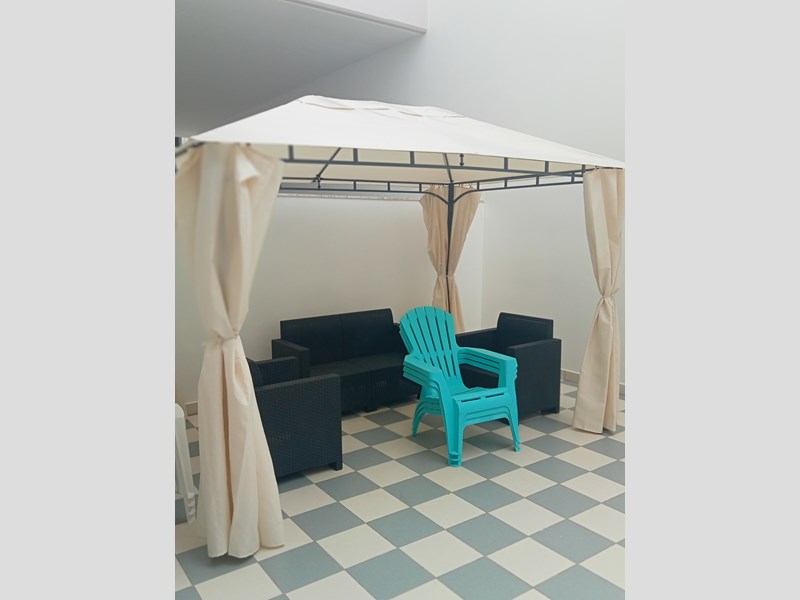 Si affitta escusivamente mesi estivi confortevole bilocale a pochi passi dal centro, ben servito (Pub, Ristoranti, Pizzerie, Edicola, Supermercati, Banche, ecc...) e vicinissimo al mare, luminoso e arredato, con ingresso indipendente al piano terra di circa 65mq. E’ composto da un'ampia camera con angolo cottura a induzione, un bagno e doccia, una camera matrimoniale, e un'ampia loggia completa di gazebo tavolo sedie e poltrone dove poter trascorrere piacevoli serate all'aria aperta . Sono presenti frigorifero, lavatrice, condizionatore centralizzato, TV. Non sono ammessi animali e non è consentito fumare.