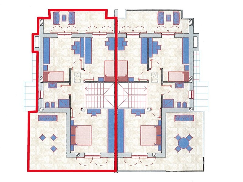 Una scala interna conduce al primo piano, interamente dedicato alla zona notte. Qui troverai un bagno principale con doccia, due spaziose camere da letto e una cameretta. Tutte le stanze hanno accesso a due terrazze per un totale di 35 mq, ideali per godersi l'aria aperta e la vista sul giardino.