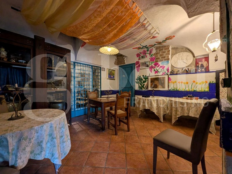 La struttura si sviluppa su 3 livelli ed è attualmente in parte adibita ad attività ristorativa, comprensiva di quattro ampie sale con cucina e servizi, ed in parte ad uso di abitazione principale con ulteriori locali da poter adibire all'attività di affittacamere.