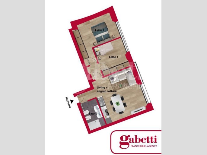 Appartamento trilocale composto da: ingresso su zona living con ampio soggiorno e cucina a vista, 2 camere matrimoniali e bagno.