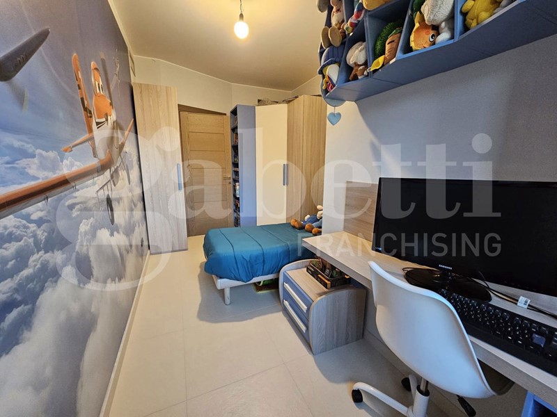 L'appartamento è stato recentemente ristrutturato, garantendo un ambiente moderno e accogliente. All'interno, troverete un luminoso salone con sala da pranzo, perfetto per momenti di relax e convivialità, una cucina abitabile completamente attrezzata e tre spaziose camere da letto di cui una con cabina armadio, ideali per assicurare la privacy di ogni membro della famiglia; dotato di due bagni di cui uno con vasca e l'altro con doccia.