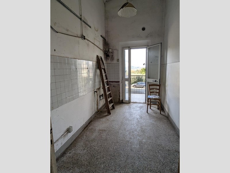 Vendiamo grande appartamento al piano primo con ingresso comune con un’altra abitazione e diviso in 5 stanze: 3 camere, soggiorno, cucina, e bagno oltre balcone tergale. Da riammodernare ma anche subito abitabile.