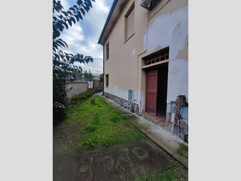 L'immobile ha ingresso indipendente da giardino esclusivo antistante. E' composto da: al piano terra da soggiorno,cucina, cantina e altro locale oltre a ripostiglio sottoscala, il piano primo è composto di appartamento di quattro vani più bagno oltre a terrazzo. E' inoltre presente altro resede per post auto con locale in muratura per garage.