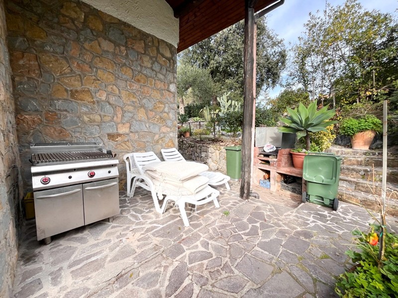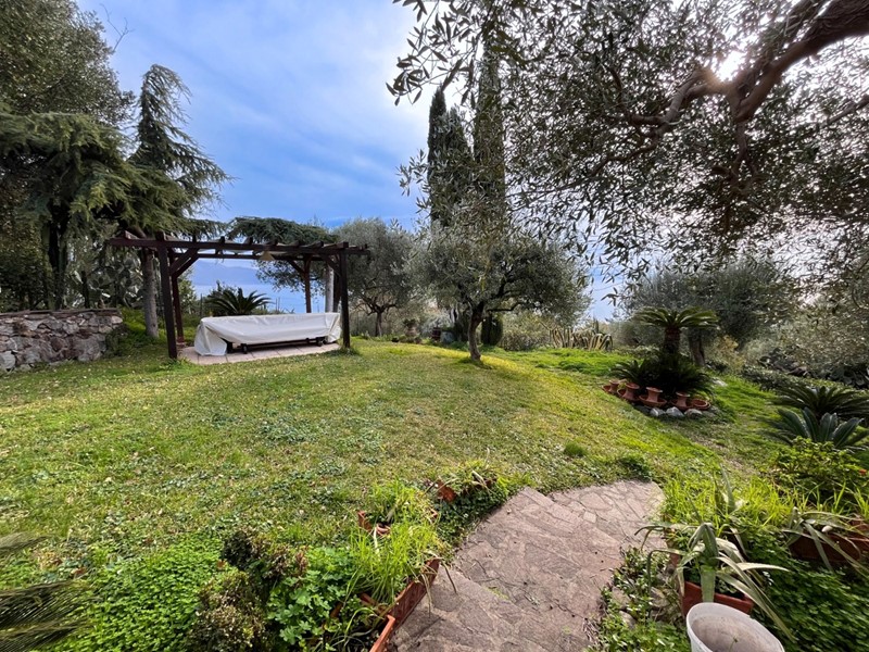La villa è circondata da un ampio giardino di 2.680 mq. con vista mare, che offre spazi ideali per il relax all'aperto, accessoriato con pergolato esterno, perfetto per pranzi e cene all'aperto, e tettoia con BBQ e lavabo.