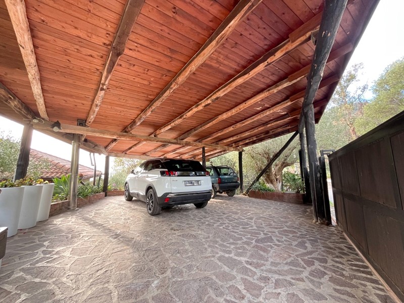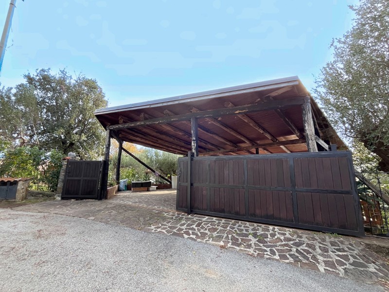 Completa la proprietà un ampio parcheggio coperto da tettoia con cancello carrabile che aggiunge ulteriore praticità.