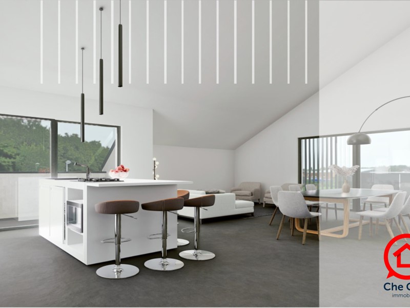 La soluzione è un importante attico al secondo ed ultimo piano servito di ascensore. Libero ed esposto su tre lati è caratterizzato da un terrazzo abitabile con vista di 20 mq e profondo 2,5 metri e all’interno, un altezza dei soffitti sino a 5,34 metri di altezza. Internamente ampio e luminoso living open space di quasi 47 mq calpestabili, due grandi bagni, ripostiglio. Zona notte composta da una camera matrimoniale padronale di 19 mq calpestabili, una seconda matrimoniale di quasi 16 mq calpestabili ed una doppia da oltre 13 mq calpestabili. Altri due terrazzi profondi 2 metri servono l’immobile.