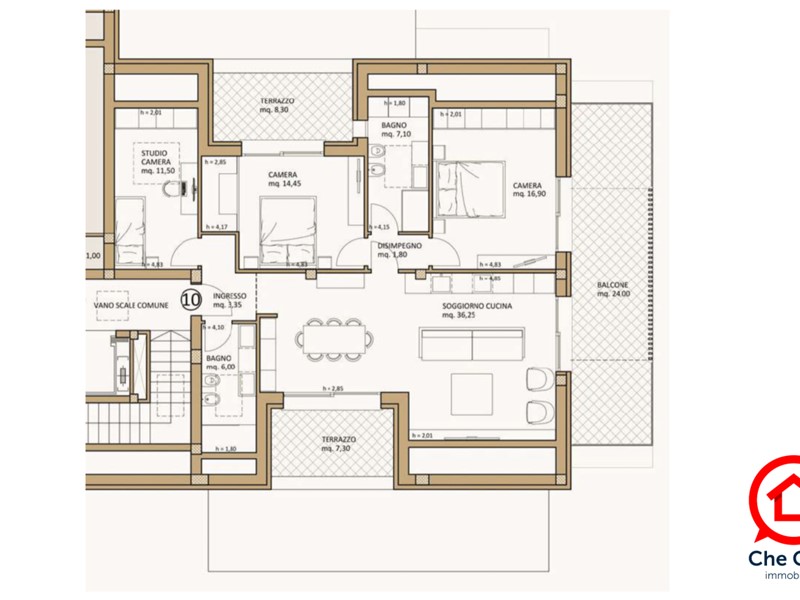 La soluzione è un importante attico al secondo ed ultimo piano servito di ascensore. Libero ed esposto su tre lati è caratterizzato da un terrazzo abitabile di 24 mq e profondo 2,4 metri e all’interno, un altezza dei soffitti sino a 4,85 metri di altezza. Internamente ampio e luminoso living open space di quasi 37 mq calpestabili, due grandi bagni. Zona notte composta da una camera matrimoniale padronale di quasi 17 mq calpestabili, una seconda matrimoniale di quasi 15 mq calpestabili ed una doppia da quasi 12 mq calpestabili. Altri due terrazzi profondi 2 metri servono l’immobile.